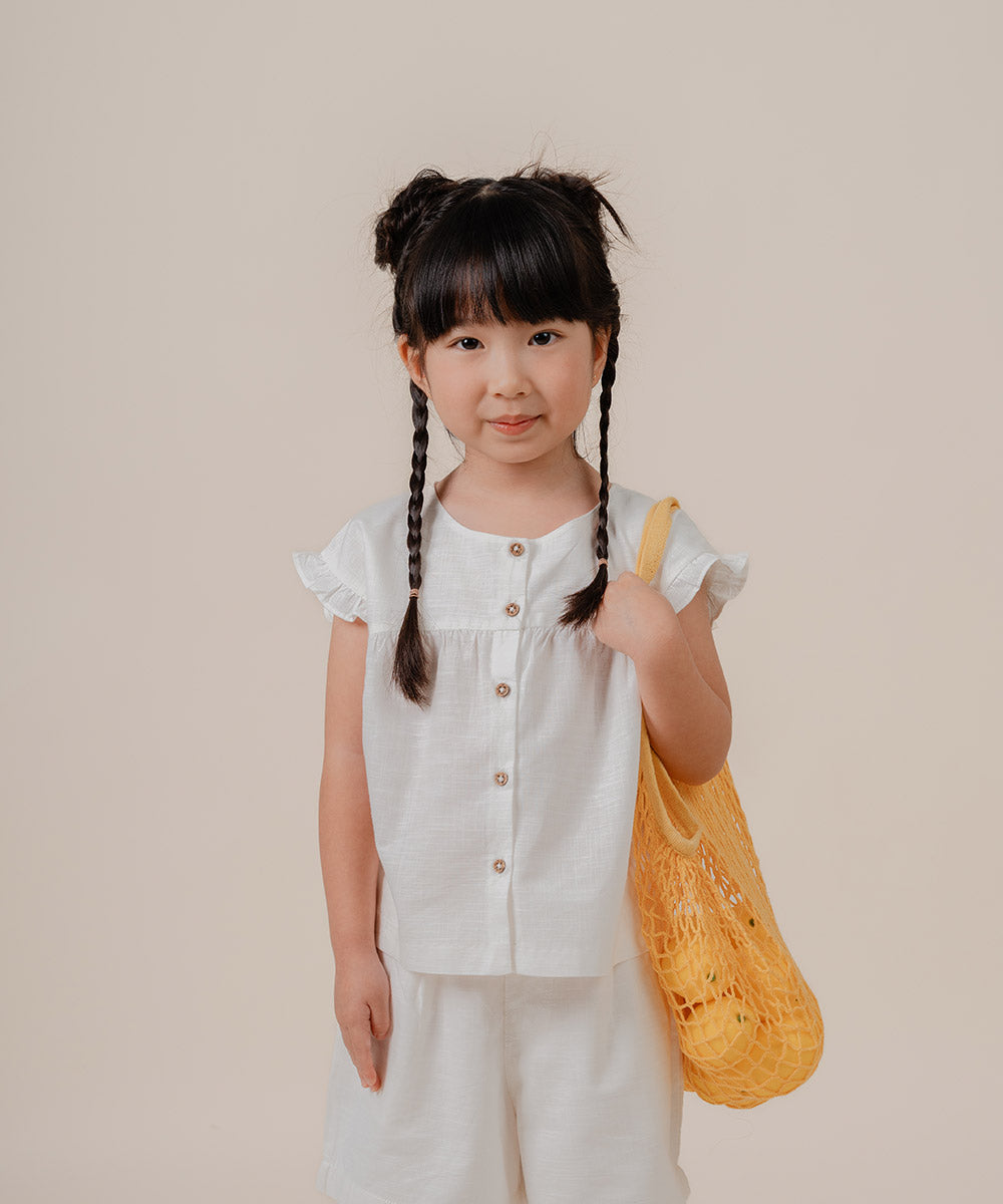 These girls shorts come in crisp off-white with a comfy elasticated waistband and practical side pockets.