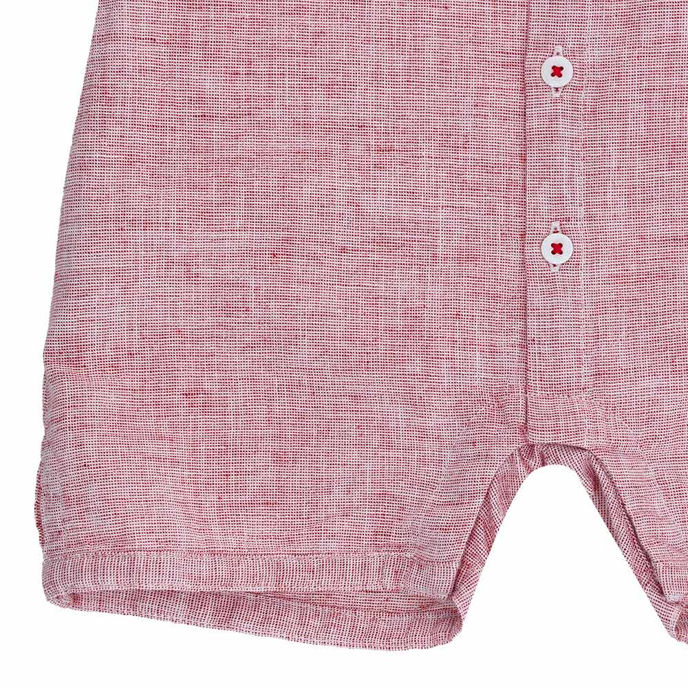 Buttons down the front and neat turn-out cuffs make it perfect for family outings and celebrations. Designed with hidden snaps for quick and easy diaper changes.