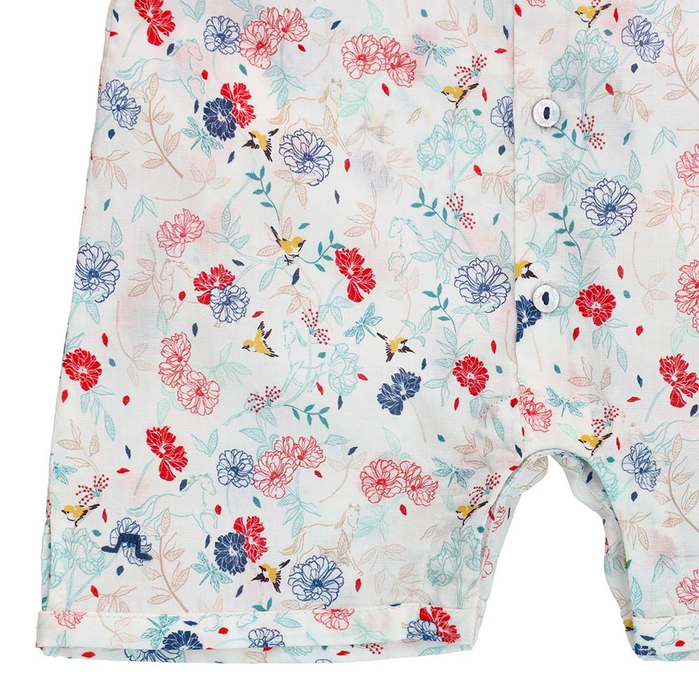 Our latest romper shirt for baby boys is thoughtfully designed with a classic collar and finished with delicate shell buttons for a refined look.